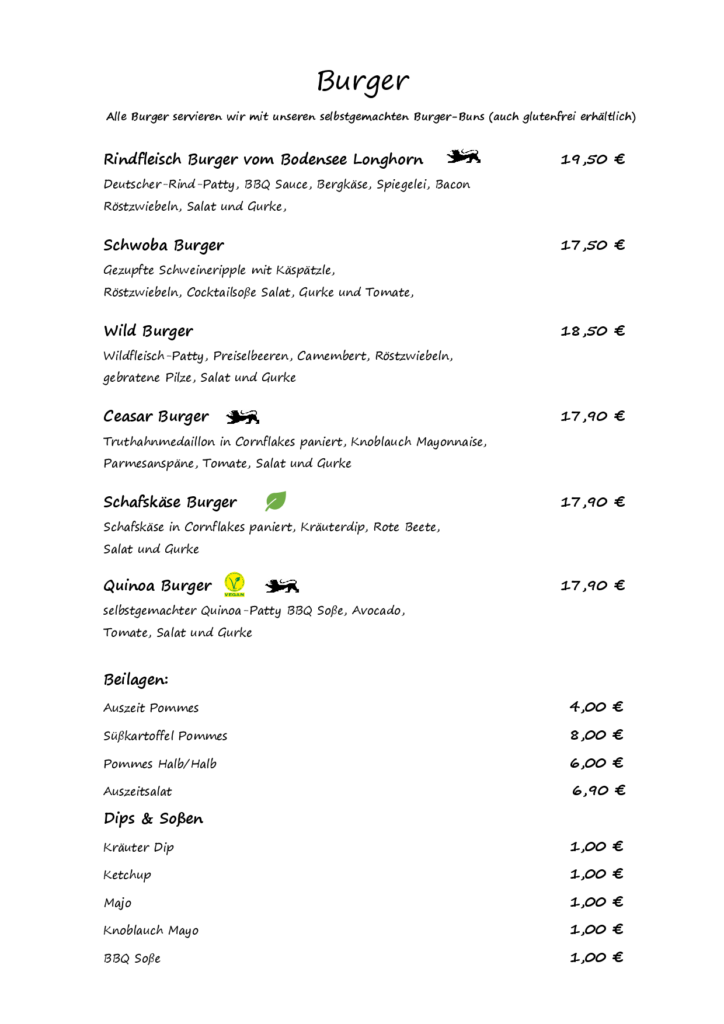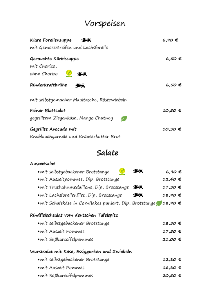Truthahn-Cordonbleu, Steaks, Spinatknödel, Wurstsalat oder die Auszeit-Pommes: Bei uns gehen rustikale Küche mit modernem Flair Hand in Hand.