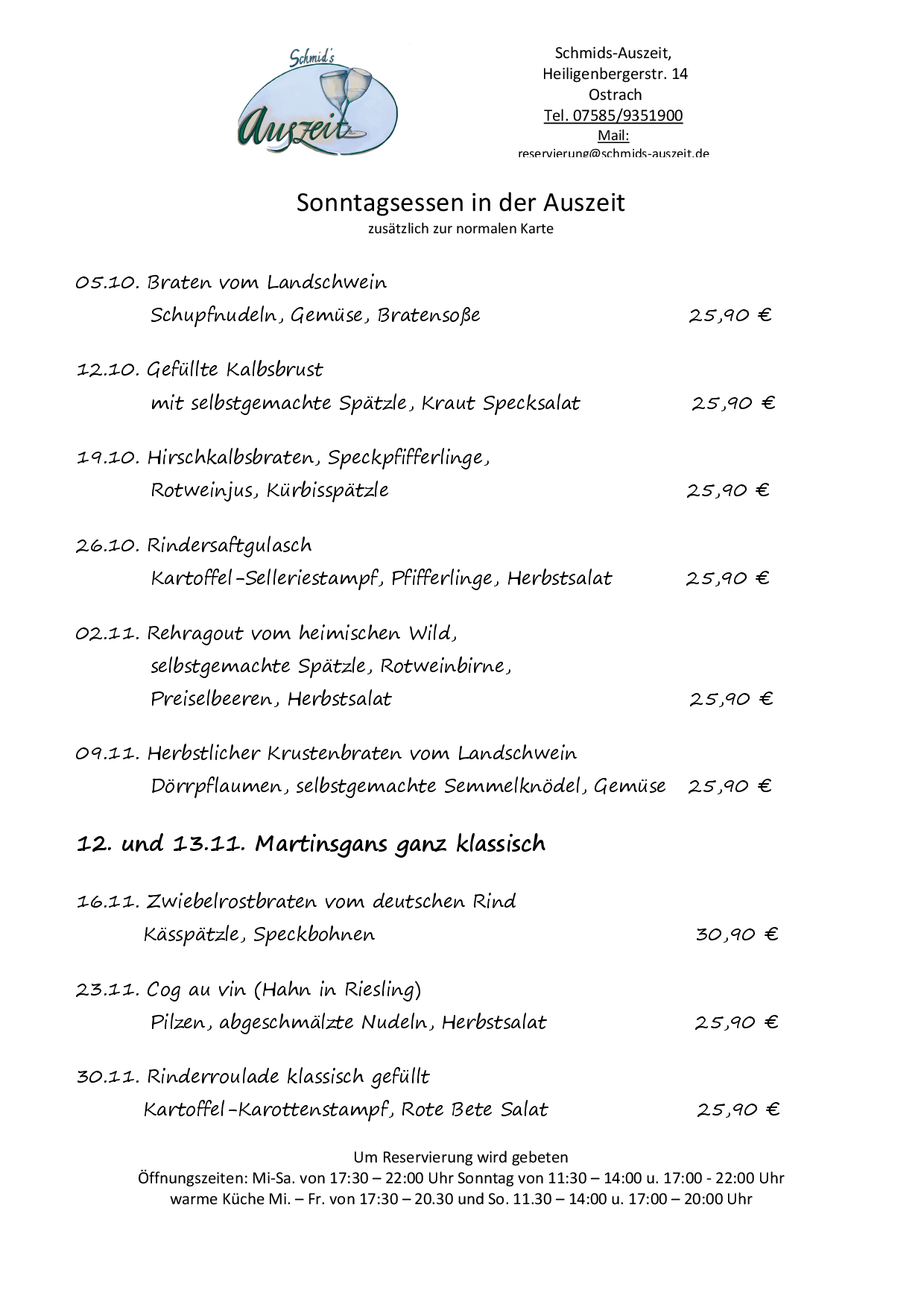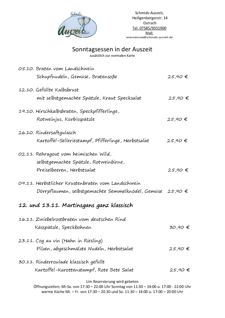 Und sonntags darf es dann auch Gans, Ente, Braten, Ochsenbacken oder Rouladen sein.